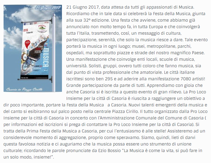 Comunicato “Festa della Musica”